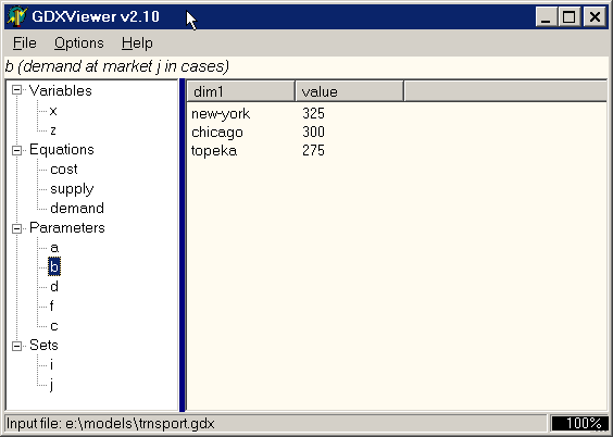 - Single parameter A single parameter is the filename of the GDX file. GDXViewer will load this file, and will continue to run interactively. Example: .