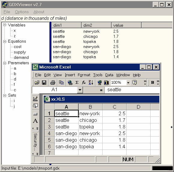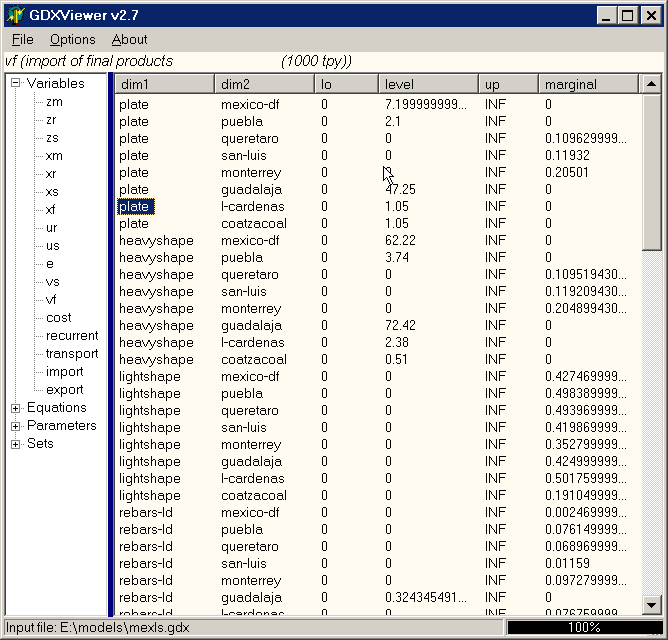 GDXVIEWER is a tool to view and convert data contained in GDX files.