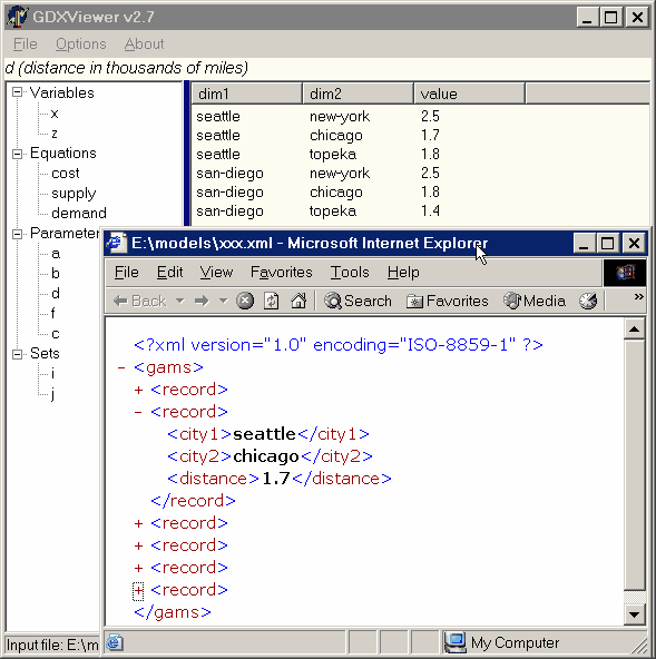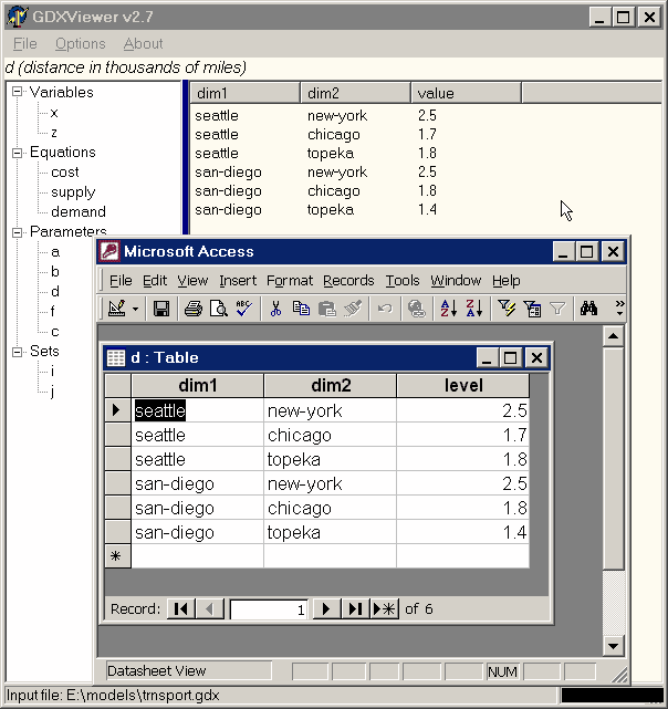 The GDX file can be loaded interactively using the File|Open menu, or it can be launched from the command line: