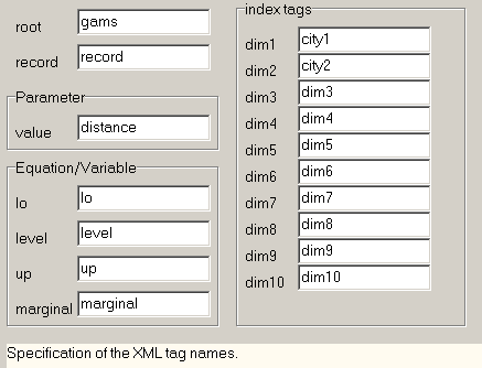 The text file export facility (File|Export|Text File) will write a GAMS identifier to a standard ASCII text file. Such a text file can look like: