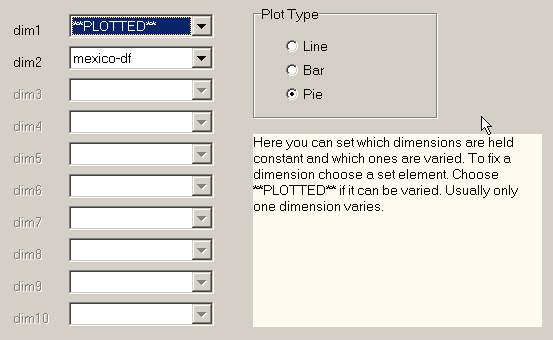 In this case we want to plot a pie graph of vf(*,’mexico-df’) which can be specified in the index-selection tab: