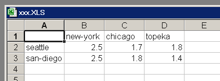new-york chicago topeka seattle 2.5 1.7 1.8 san-diego 2.5 1.8 1.4