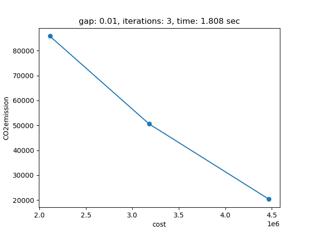 If plot is set to 1 and Python package matplotlib is installed, a plot of the pareto front is generated: