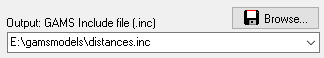 This option specifies the name of the output file. The format of the output file will be a GAMS include file for a parameter or set statement. Make sure the directory is writable. UNC Names can be used. An output file must be specified for batch operation: i.e. either O= or X= needs to be specified (or both). The include file will be an ASCII file that can be read by GAMS using the $include command within the data definition of a set, parameter or scalar. If the include file already exists, it will be overwritten. This option is demonstrated in most examples, see Example 1 - Reading a single valued Table for instance.