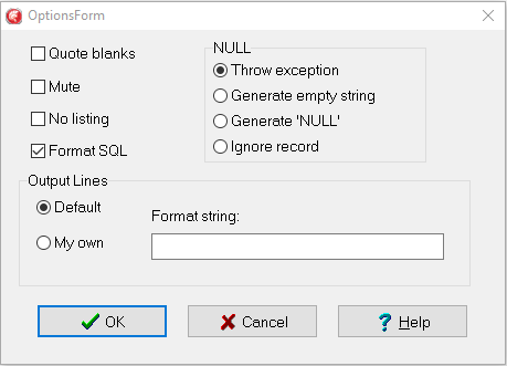 Q Query none This option can be used to specify a SQL query (required).