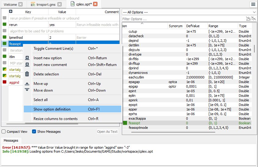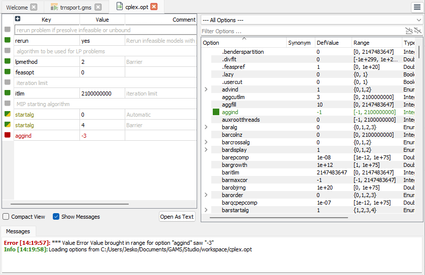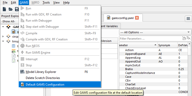 | - Set default options for the IDE only | - Interactive editor for the GAMS User Configuration |