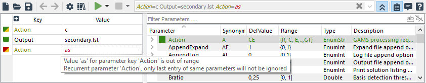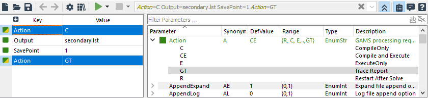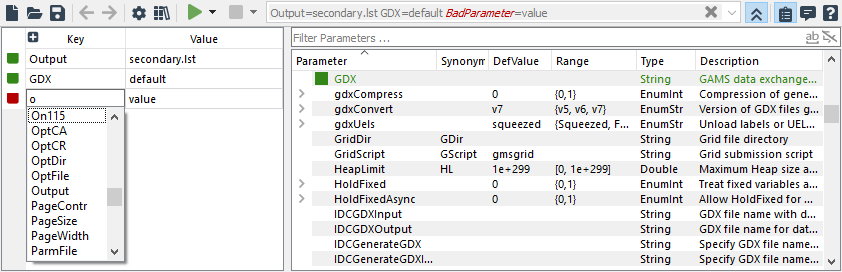 | - Use different GAMS versions | - Interactive editor of GAMS command line parameters |