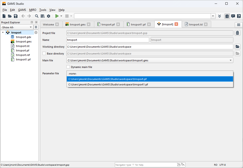 Another crucial difference is the concept of a "main file." While the GAMSIDE always executed the .gms file that was currently active in the editor, GAMS Studio executes the main file of the currently active project.