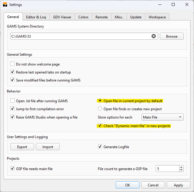 The behavior of projects and file execution has changed significantly from the classic GAMSIDE to GAMS Studio. Understanding these differences is key to a smooth transition.