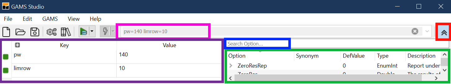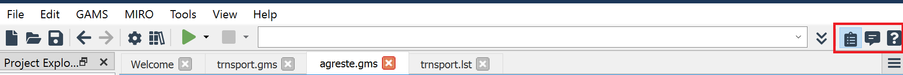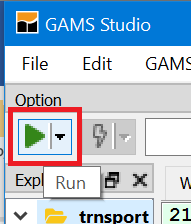 Run GAMS by clicking the run button