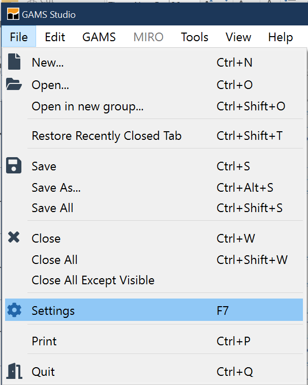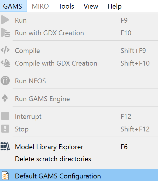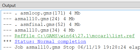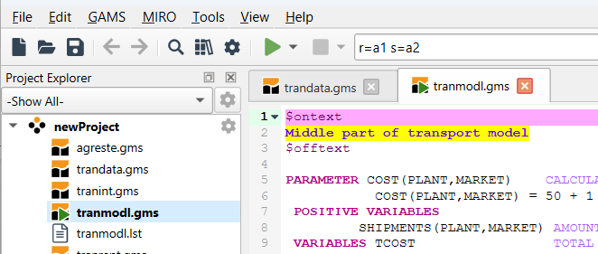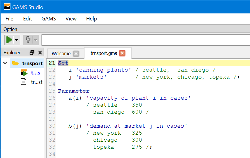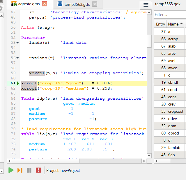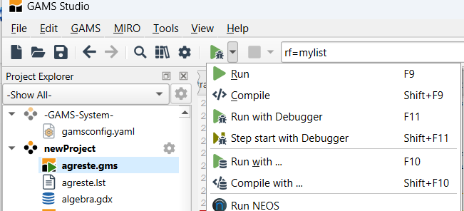 7. Run the file with GAMS by clicking the run button or pressing F9