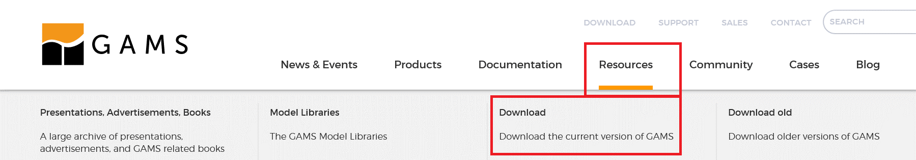 1. Download the GAMS installation file from www.gams.com under Resources and Download