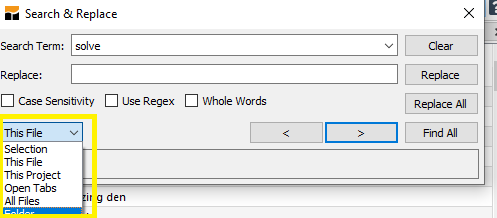 Subsequently, when this file is opened or its tab activated then this solver option editor appears.
