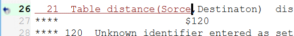 Non-bolded black line Control click on this takes you to LST file. Double-click on error message takes you to spot in LST file.