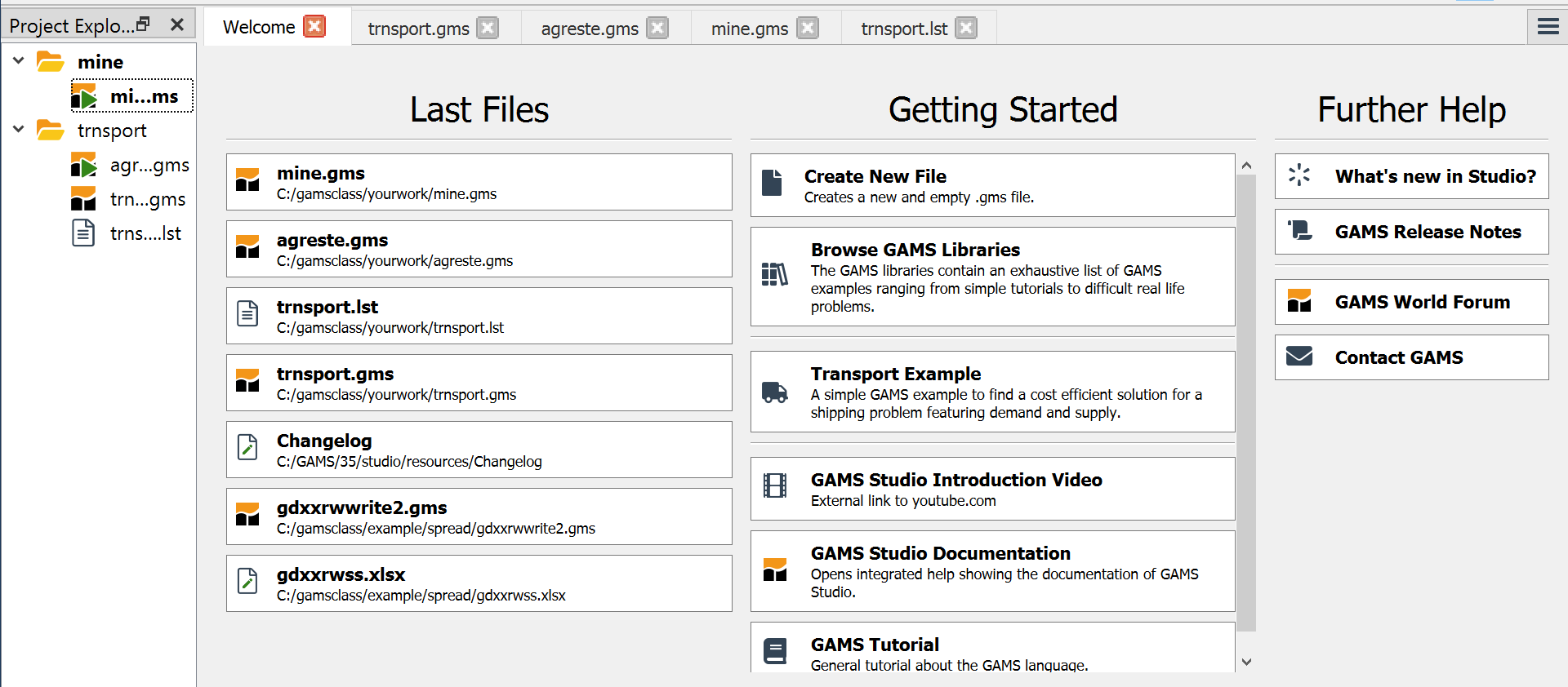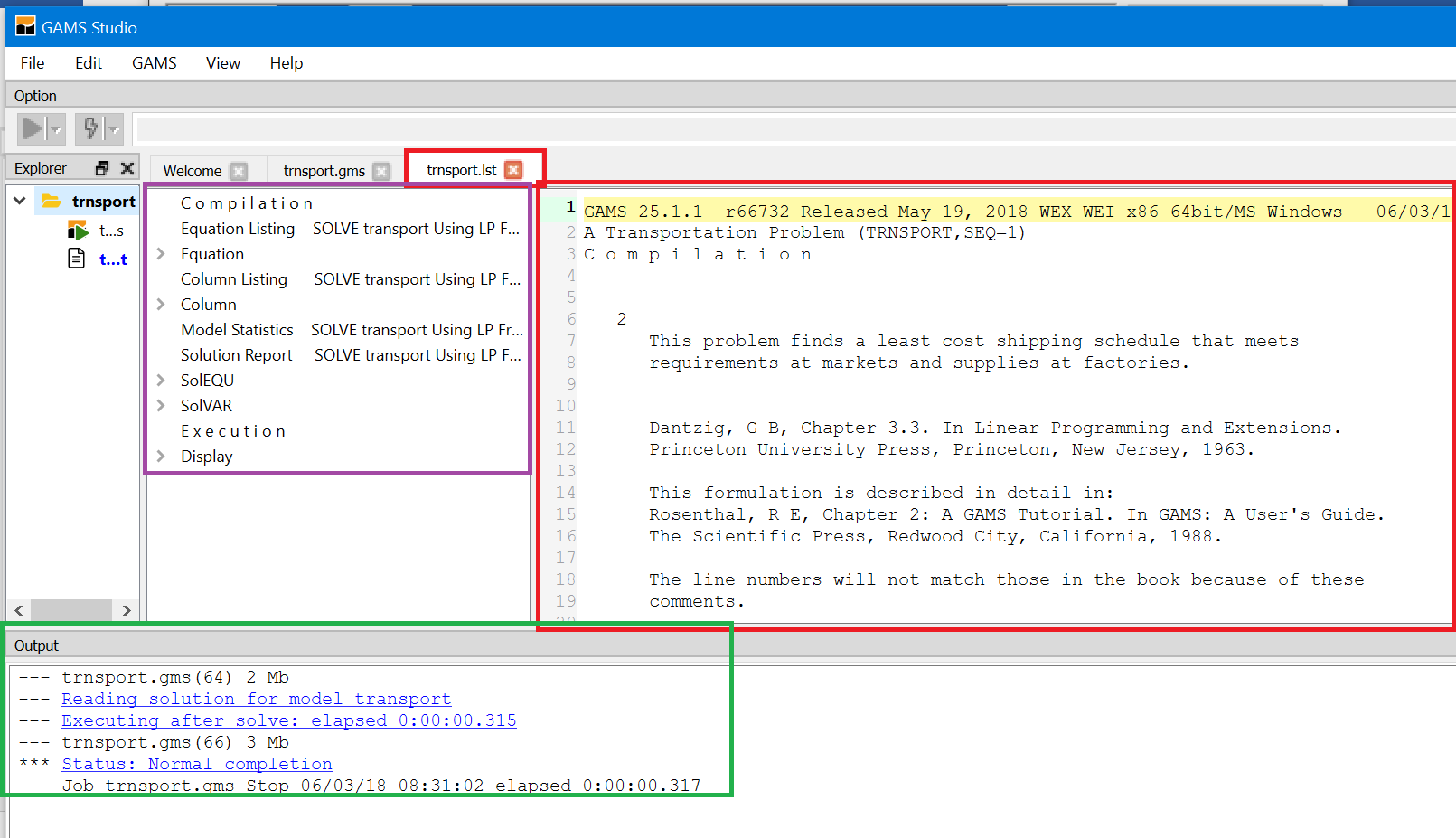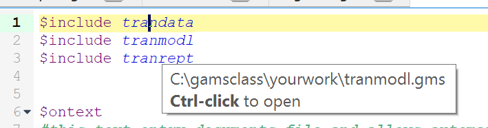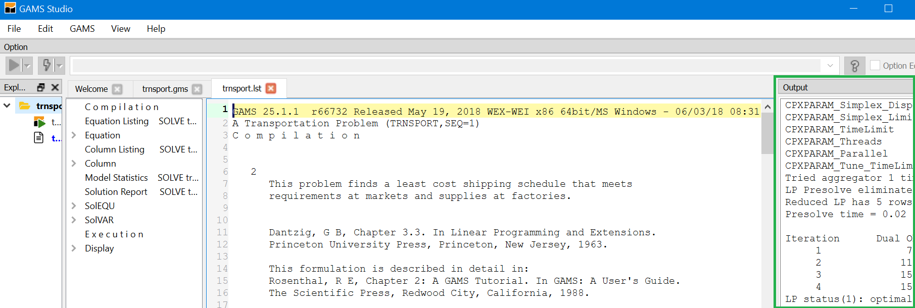 When using model library trnsport.gms should now appear as part of your STUDIO screen.