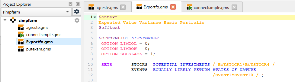 2. GAMS STUDIO or GAMS IDE alternatives. Graphical interfaces to create, debug, text edit and run GAMS files.