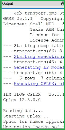 Second, one submits that file to GAMS which executes those instructions causing calculations to be done, solvers to be used and a solution file of the execution results to be created.