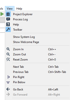 Here selecting the Process Log and possibly the Explorer are of interest. Here selecting the process log window, toolbar and possibly the Explorer are of interest.